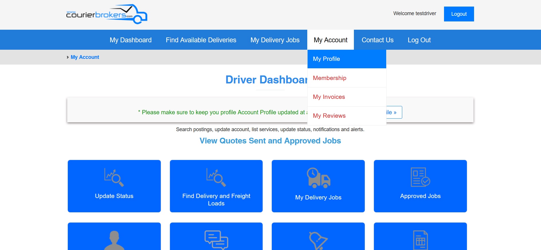 We encourage you to make full use of your profile by including as much relevant and specific information about your delivery service and the type of work you handle, whether that's local, same day or long distance courier or trucking jobs and the type of vehicle you own. The shipper can view your profile, learn the services you provide before deciding whether or not to accept your bid.